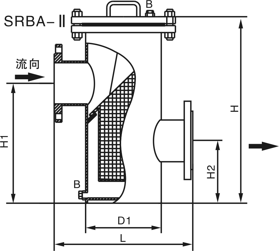 及緊固件等組成。當流體進入置有一定規格濾網的濾筒后,其雜質被阻擋,而潔凈的流體通過濾藍、由過濾器出口排出。當需要清洗時,旋開主管底部螺塞,排凈流體,卸下法蘭蓋,清洗后重新裝入即可。因此,使用維護極為方便。首先經過粗濾網濾掉較大顆粒的雜質,然后到達細濾網。在過濾過程中,細濾網逐漸累積水中的贓物、雜質形成過濾雜質層,由于雜質層堆積在細濾網的內側,因此在細濾網的內、外兩側就形成了一個壓差。