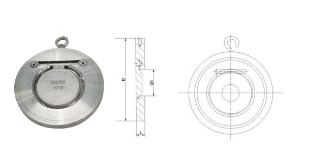 H74薄型對夾旋啟止回閥,是一種圓片式超薄止回閥,它具有結構簡單,外形美觀、重量輕、安裝方便等優點。止回閥又稱單向閥或逆止閥,其作用是防止管路中的介質倒流。水泵吸水關的底閥也屬于止回閥類。啟閉件靠介質流動和力量自行開啟或關閉,以防止介質倒流的閥門叫止回閥。止回閥屬于自動閥類,主要用于介質單向流動的管道上,只允許介質向一個方向流動,以防止發生事故。薄型止回閥主要適用于給水系統、石油、 化工、冶金等工業部門對有安裝空間限制的場所最為適用。