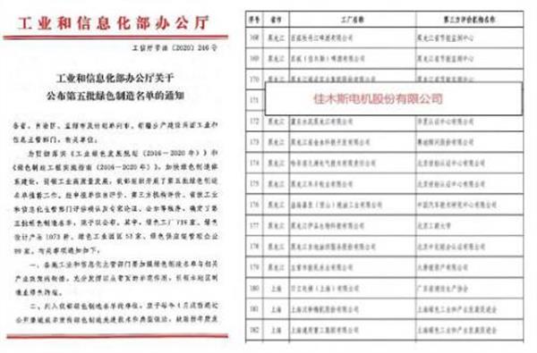 近日,在推動綠色發展,踐行新發展理念,積極響應國家節能減排與綠色環保號召上,哈電集團佳電股份再次發力,被國家工業和信息化部評為國家級“綠色工廠”,8個系列高低壓產品,首批獲得國家“綠色設計產品”稱號。受此認證,哈電集團佳電股份將被納入萬家用能單位的采購推薦名單,作為綠色電動機產品被鼓勵優先采購,這是哈電集團佳電股份做為央企控股品牌,履行社會責任,全面推動綠色制造的又一殊榮。